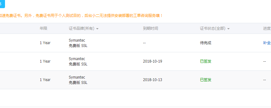 這個步驟相對來說比較簡單,需要注意的地方也不多,按照阿里云官方的提示來,就能夠操作成功了。值得注意的是你在申請證書過程中,證書是免費的,你不用付費,但是需要下單,下單完成后需要完善你的域名信息,然后提交審核。審核完成后,官方自動給你發(fā)放證書,順利的話一個小時就能搞定。